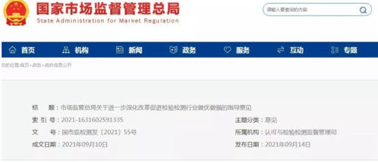 坯D¯»åQ?国家市场监管æ€Õd±€å‘å¸ƒäº†å…³äºŽè¿›ä¸€æ¥æ·±åŒ–改é©ä¿ƒ˜q›æ£€éªŒæ£€‹¹‹è¡Œä¸šåšä¼˜åšå¼ºçš„æŒ‡å¯¼æ„è§åQŒå¯¹‹‚€éªŒæ£€‹¹‹è¡Œä¸šæœªæ¥çš„å‘展ã€è¡Œä¸šäؕ象的解决½{‰é—®é¢˜æŒ‡æ˜Žäº†æ–¹å‘ã€?/span>